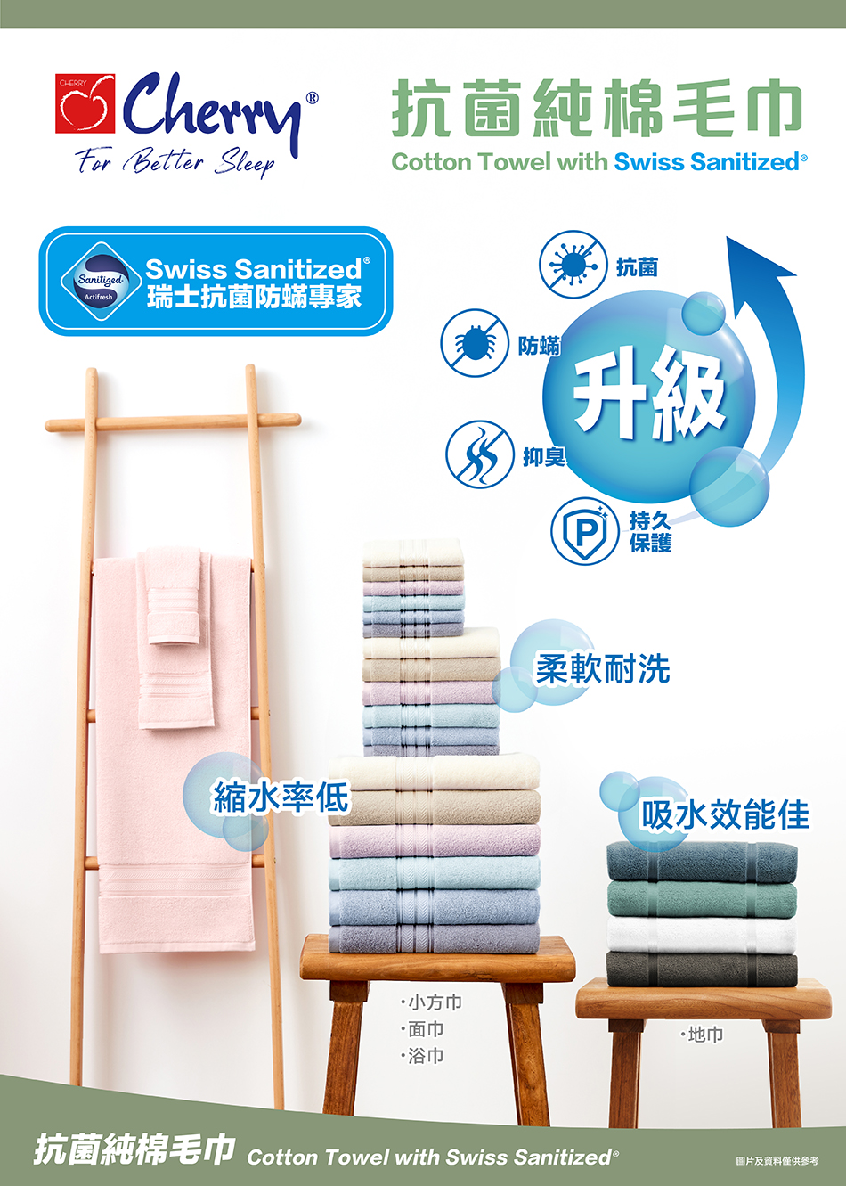 新升級版本加入Swiss Sanitized®(瑞士山寧泰)抗菌技術,抗菌防蟎及抑臭,保護持久